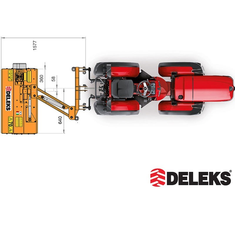 Il trituratore laterale per trattore DELEKS VOLPE 100 160 kg è adattato alla trattori da 25 a 45 CV. Questo modello è progettato per tagliare l'erba e anche i rovi fino a 2-3 cm di diametro, ideale per i bordi delle strade. Questo trituratore può essere utilizzato per tagliare i cespugli, si inclina di circa 88 gradi verso l'alto e 60 gradi verso il basso.