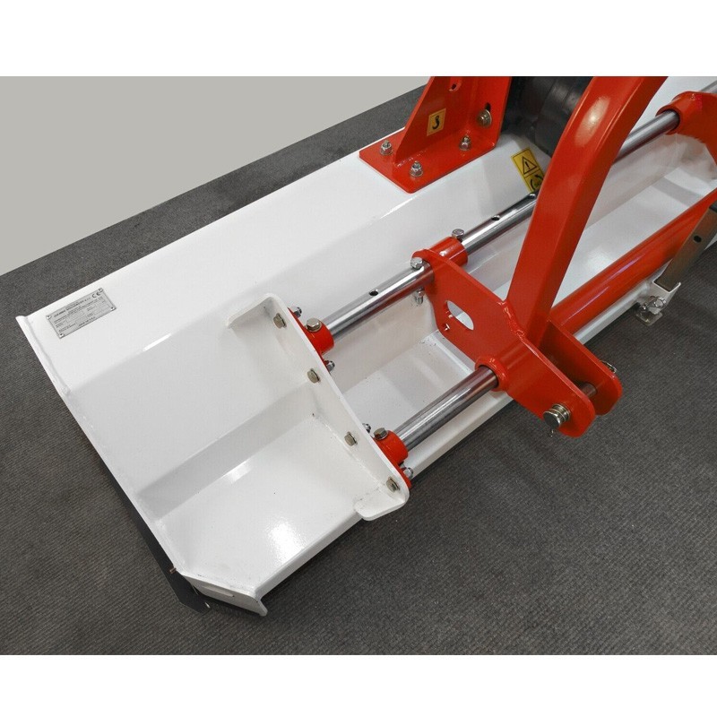 Dispone anche di pattini laterali regolabili in altezza e di un attacco universale di categoria I-II, che lo rende compatibile con un'ampia gamma di trattori. Per una maggiore comodità, sono disponibili come optional un attacco a pistone idraulico per la traslazione idraulica e un disco interfilare, che ne aumentano ulteriormente la funzionalità.
