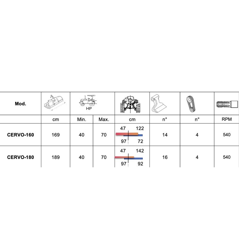 Specifiche tecniche CERVO 160 CERVO 180