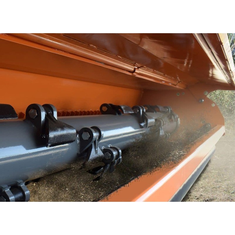 Dotato di martelli montati su un albero da 168 mm e di un sistema di spostamento da 500 mm, questo trituratore offre prestazioni ottimali per trattori oltre 50 CV.