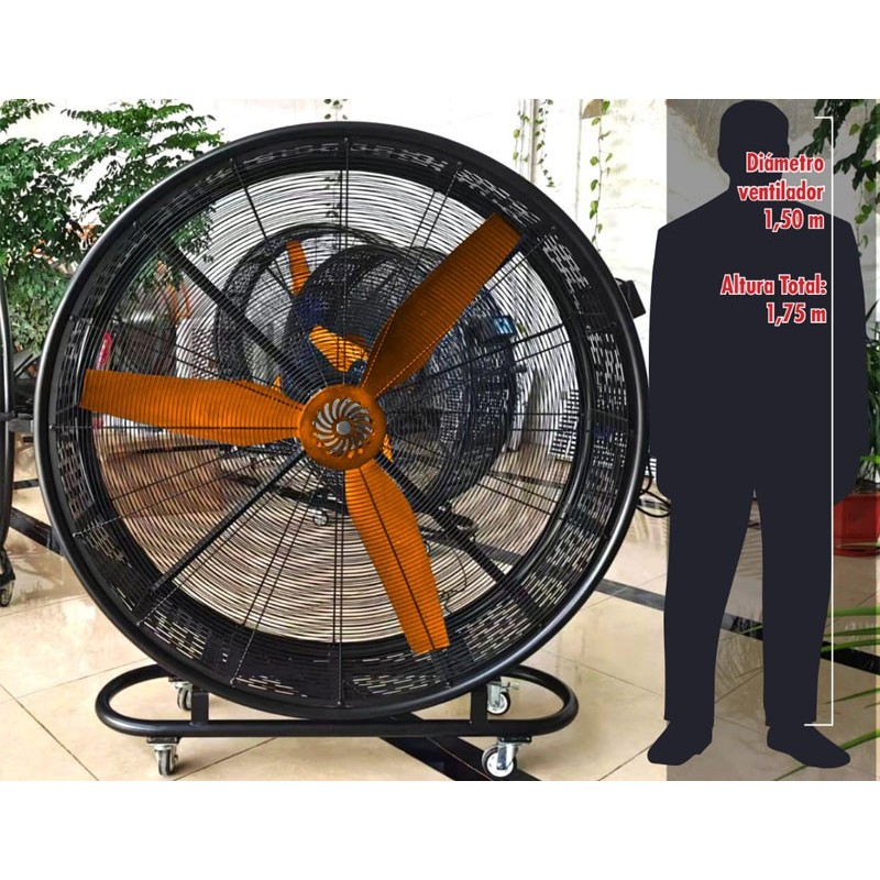 Il suo design trasportabile con una base a quattro ruote lo rende facile da spostare, consentendo di dirigere il flusso d'aria dove è più necessario. Ha tre pale e un'altezza totale di 1,75 m, funziona a 220 V in un sistema monofase, il che lo rende efficiente e facile da collegare in ambienti diversi.