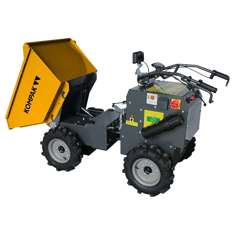 La Mini dumper a batería Kompak MDA300-E destaca por su motor eléctrico sin escobillas de 800W * 2, proporcionando una potencia eficiente para enfrentar diversas tareas. Equipado con tracción 4WD y freno de disco hidráulico, ofrece un rendimiento robusto y seguro.