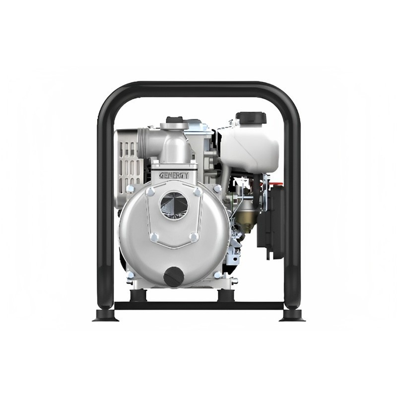 La Motobomba Gasolina Genergy Turia II 35000 L/H 28 m tiene un motor a Gasolina de 4 tiempos OHV refrigerador por aire, una altura máxima de aspiración de 7 metros, y una altura de elevación máxima total de 28 metros. Se puede usar tanto en aguas limpias como sucias sin solidos.