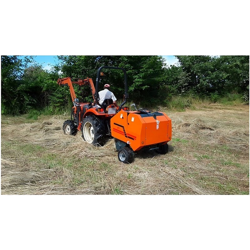 Graças ao seu tamanho compacto e peso reduzido, é ideal para tratores de pequenas dimensões e baixa potência, garantindo um manuseio simples e seguro. Este modelo inclui uma corda que é ativada automaticamente ao atingir a pressão desejada, garantindo fardos uniformes e bem compactados.
