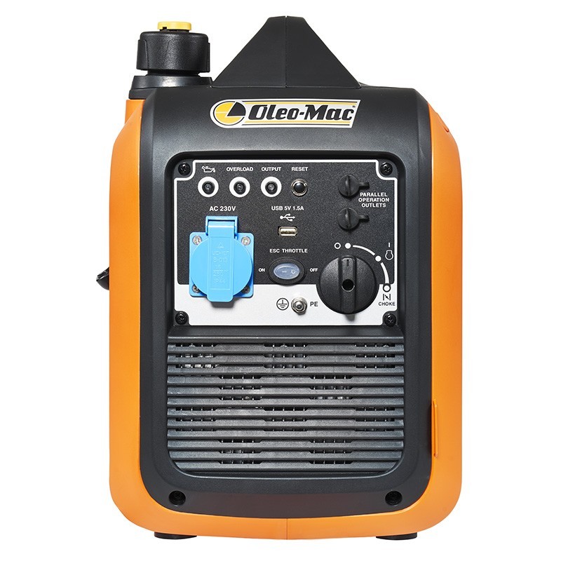 O Gerador Elétrico Inverter Oleo Mac PGE 23i S é uma máquina inversora potente com uma potência nominal de 1,8 kW e uma capacidade de arranque de 2,3 kW. É alimentado por um motor Emak K 300 HG OHV de 79 cc e tem um depósito de combustível de 4 litros e um depósito de óleo de 1,1 litros, garantindo um longo tempo de funcionamento.