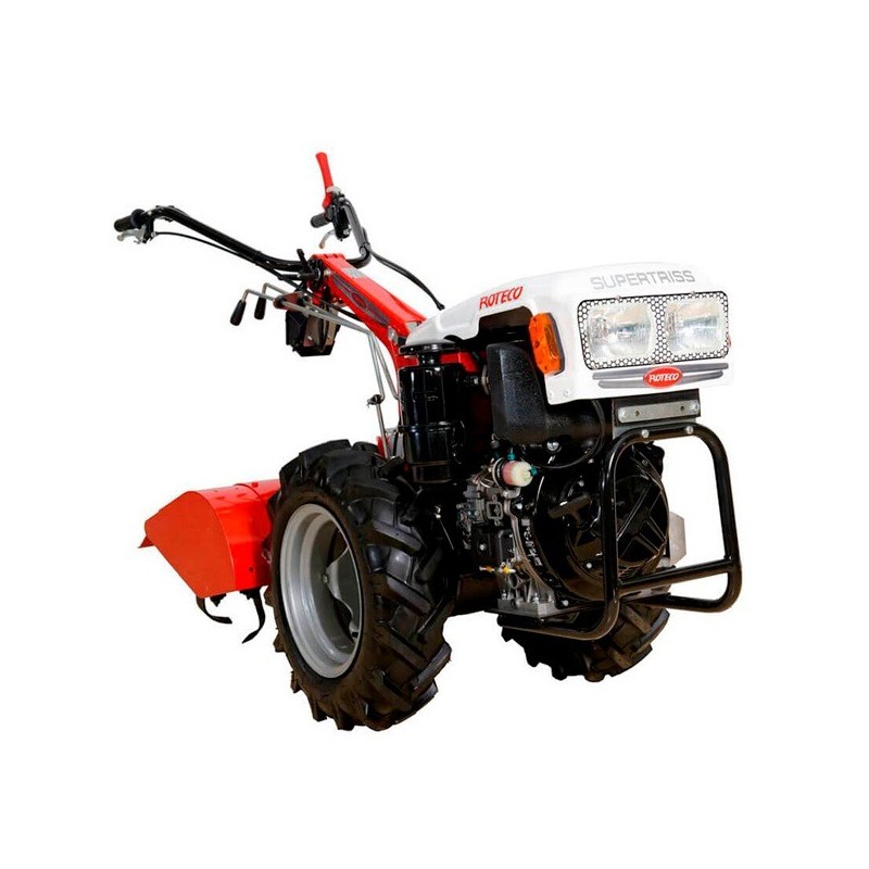 O Motocultivador Roteco supertriss, tem a grande vantagem de poder escolher o motor da marca pretendida com diferentes motorizações e a largura pretendida de enxada rotativa.
