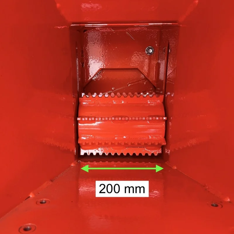 Este modelo destaca-se pela sua estrutura robusta, facilidade de manutenção e uma tremonha de ejeção giratória a 180°, que facilita a recolha do material triturado. Inclui ainda um veio cardan com homologação CE e um sistema de segurança com alavanca de paragem rápida.