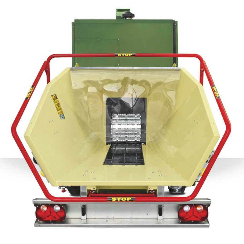 O Trituradores de madeira Negri R340DL56OTRGN com um sistema de corte que combina 20 martelos de aço temperado e 4 lâminas do mesmo material, tritura ramos com um diâmetro máximo de 180 mm e um diâmetro de produção horária de 25 a 30 m3/h, a nova máquina oferece uma eficiência de trituração notável.