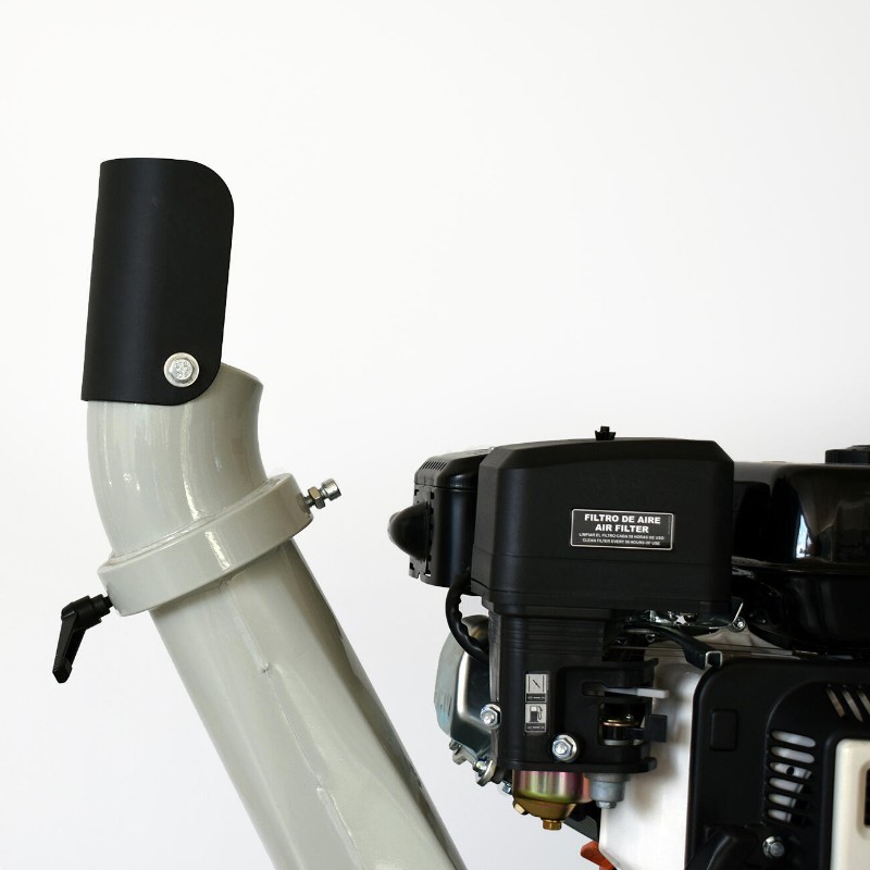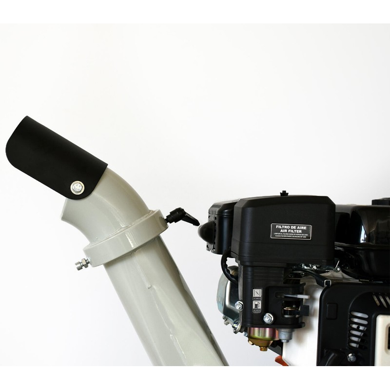 Este modelo inclui um sistema de tremonha com uma calha de descarga ajustável a 360°, permitindo um manuseamento mais confortável e versátil. Além disso, possui uma lâmina bio-chipper de 300 mm que garante cortes limpos e rápidos, enquanto o seu peso de 195 kg e as rodas 16*8-7 facilitam o transporte e tornam-no estável no solo.