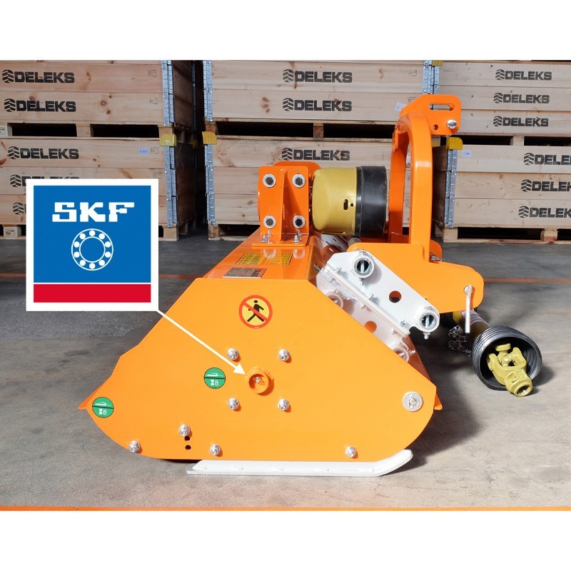O Triturador de martelo Deleks LINCE-SP120 vem com gimbal CE incluído, inclui também suportes para martelos em HARDOX. A alfaia pode ser utilizada em tractores de baixa potência em jardins e pomares graças ao seu peso reduzido de 175 kg.
