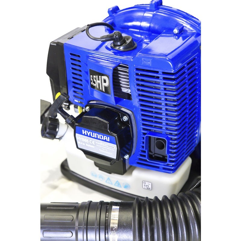 El soplador Hyundai HYB85 es una herramienta potente equipada con un motor de gasolina de 2 tiempos y una cilindrada de 82,4 cc.