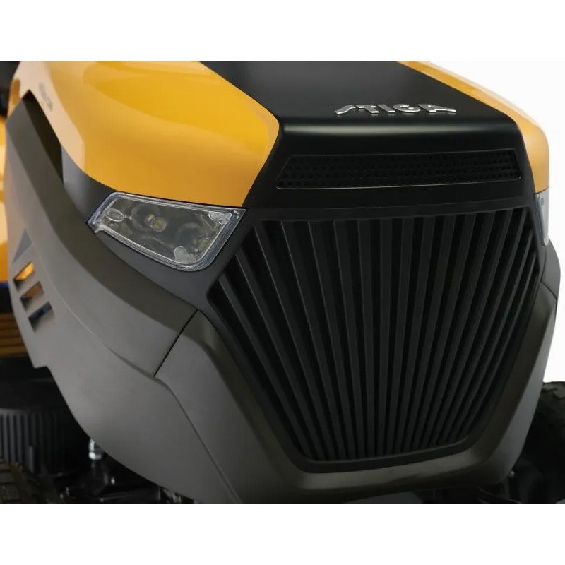 Experimente la conveniencia de cortar su césped sin interrupciones gracias al recogedor de hierba de 240 l incluido. Con esta capacidad generosa, podrá centrarse en el corte, eliminando la necesidad constante de viajes al contenedor. El panel intuitivo del tractor proporciona información en tiempo real sobre el estado de la batería, mientras que el botón de arranque rápido facilita un inicio sin complicaciones.