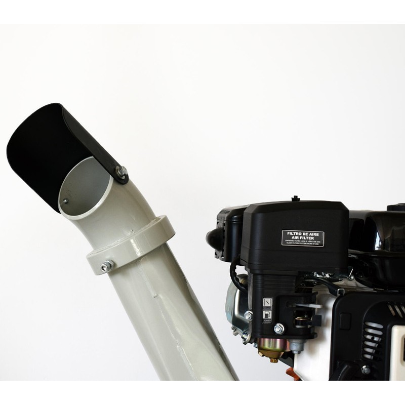 Su diseño incluye un canal de descarga ajustable a 360º, lo que facilita la dirección de los restos triturados. Además, cuenta con un sistema de arranque manual y un depósito de aceite de 3,6 L, lo que proporciona comodidad y durabilidad en su uso. Con un peso de 90 kg y un kit de ruedas, es fácil de transportar y manejar en diferentes terrenos.