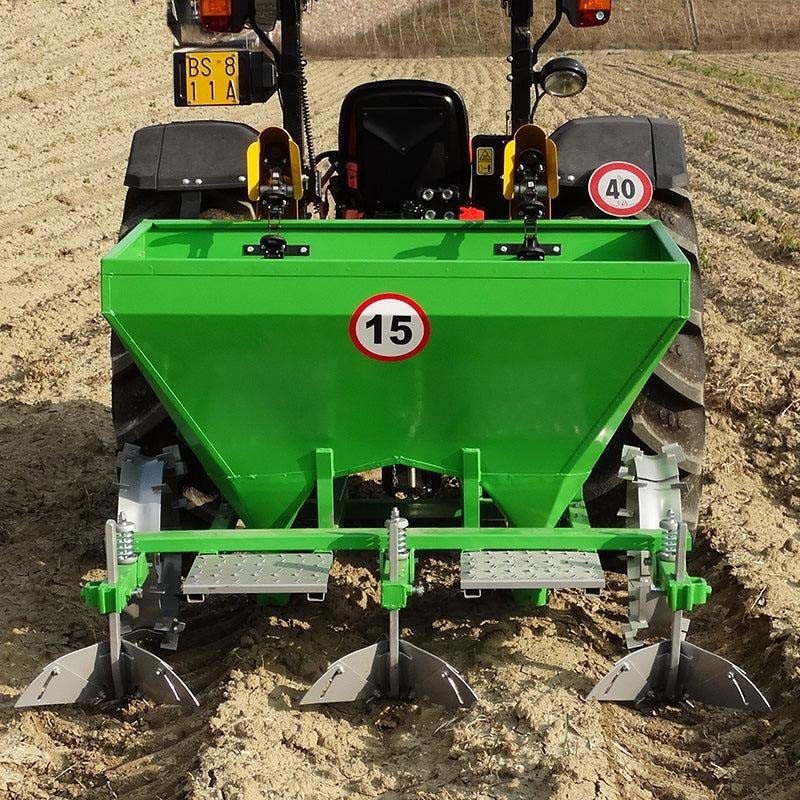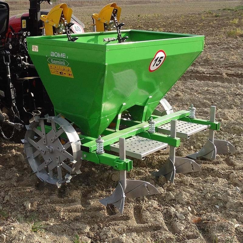 З іншого боку, модель (PT 75) з двома випусками картоплі може одночасно обробляти дві гребені, з відстанню між гребенями від 62,5 до 75 см і такою ж регульованою відстанню між картоплинами. Ця модель має максимальну вантажопідйомність 300 кг при висоті 130 см і вазі 220 кг, а також потребує трактора потужністю від 15 до 60 к.с.
