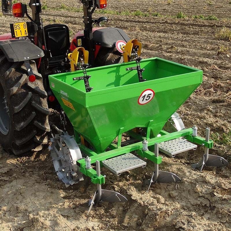 Картоплесаджалка Giemme PT - це сільськогосподарська машина, призначена для оптимізації посадки картоплі. Система регулювання ви сіву здійснюється за допомогою коліс, що забезпечує точний і рівномірний розподіл насіння на полі.