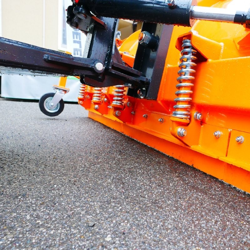 Ця модель снігоприбирального відвалу має 6 пружин протиударних, які постійно захищають відвал, 3 сталеві пластини, які можна легко замінити, а також бічні колеса, які регулюють висоту, підтримуючи глибину роботи.