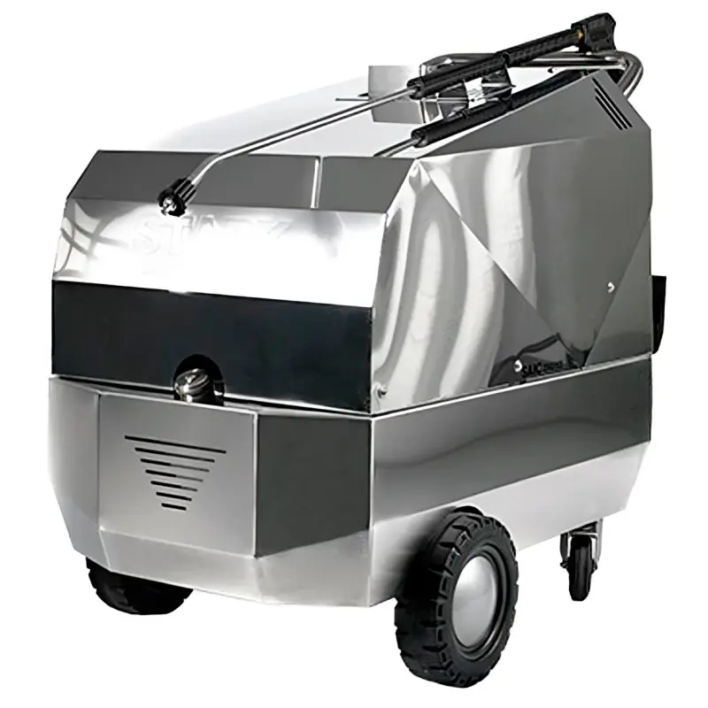 Шасі і капот виготовлені з нержавіючої сталі, щоб витримувати миючі засоби і гарячу воду, оснащені всмоктуванням миючого засобу під низьким тиском, регулятором тиску, термостатом, індикатором наявності мережі, запобіжним клапаном і системою відключення з таймером, яка вимикає апарат, коли пістолет не використовується.