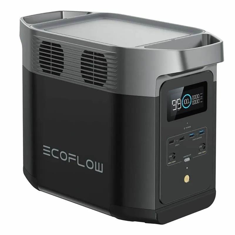 Сонячний генератор EcoFlow DELTA 2 має 4 виходи змінного струму загальною потужністю 1800 Вт з піковою потужністю 2700 Вт і навантаженням 1200 Вт. Ця машина включає близько 3000 циклів, які працюють на більш ніж 80% своєї потужності.
